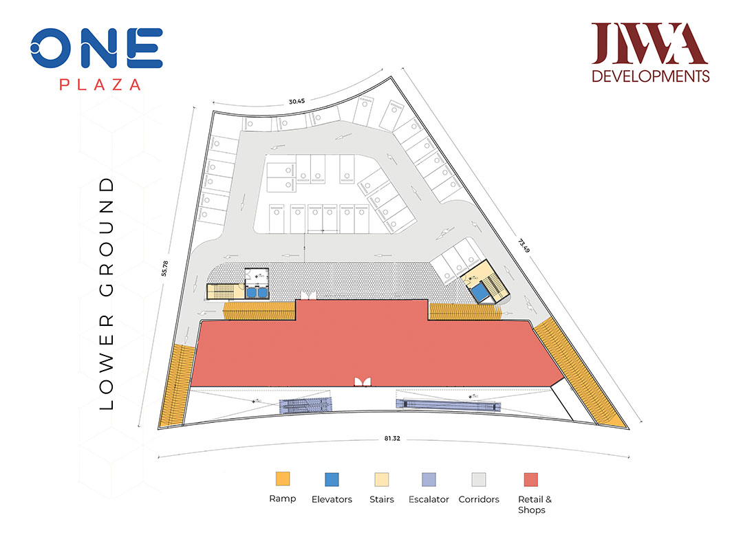 One plaza is a commercial administrative and medical project located at the center of 1 st Settlement New Cairo in a vital location at Mostafa Kamel Axis, with an area of 3,060 sqm . One Plaza consists of 5 floors including one level of underground parking, Lower ground, ground and first floor are commercial zone With a second & Third floor dedicated to administrative and medical units .