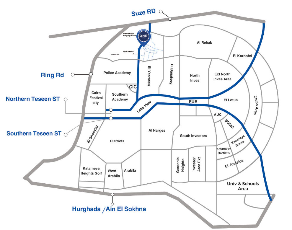 With an exceptional location on Mostafa Kamel axis, and in the middle of the main roads linking the neighborhoods of New Cairo One Plaza project is in a vital location characterized by its proximity to all essential services .