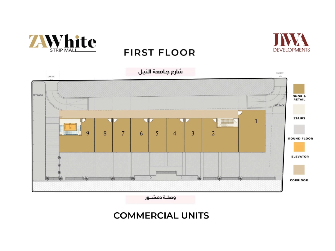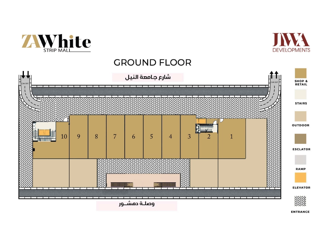 Za white is located in a significant and strategic location, in front of Ferrari and Mall of Arabia, on waslet dahshour road and the 26th of July Axis, and next to the Nile University Za White rhythmically is located to be the spot of the entire area surrounded by the following landmarks